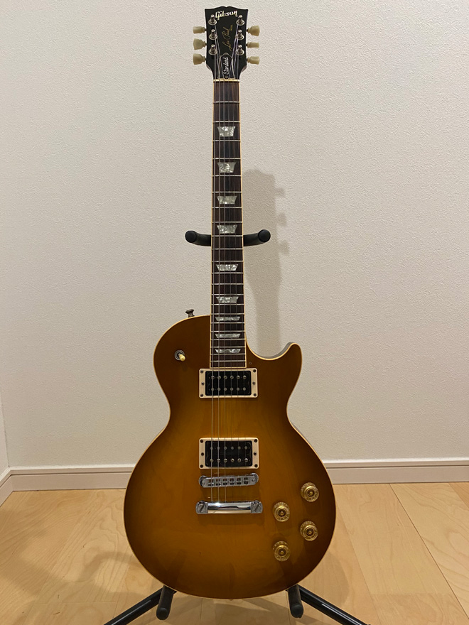 今から25年前、そんな自分がハタチの頃スラッシュが好きすぎて購入したハニーサンバーストのレスポールスタンダード。バンドではベースを担当していたため、外でレスポールを弾く機会は全くありませんでしたが、家ではとにかくベースよりこのギターでひたすらガンズのコピーをしていました。