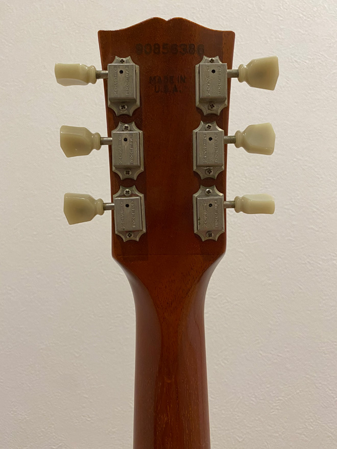 ショックの中、家を片付け、一旦レスポールをハードケースにしまいました。その後結婚やら引っ越しやら色々あり、すっかりレスポールもハードケースに入れたままでしたが、数年経ったのちようやく修理を依頼。修理完了まで1年近くかかるという、なんとも長い期間を待ちましたが、その間に新居を購入し、入居するタイミングで手元に戻ってくる、と言うなんとも計ったかのような出来事に愛着が倍増した次第です。20年以上の付き合いになりますが、互いに心機一転、今も良い相棒でいてくれます。