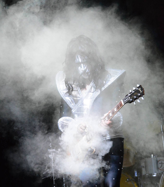 御本家オリジナルKISSのステージをご存知の方には、釈迦に説法だが…使い方としては“ギターソロの終盤でギターから煙が吹き上がる→それをステージ上でスタンドに掛け、上手ソデヘ消える→別のギターを持って再登場。Aメジャーコード一閃!カッコよくスタンドを指差すと、ギタースタンドが燃える(?)”…という流れである。