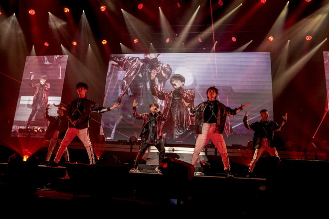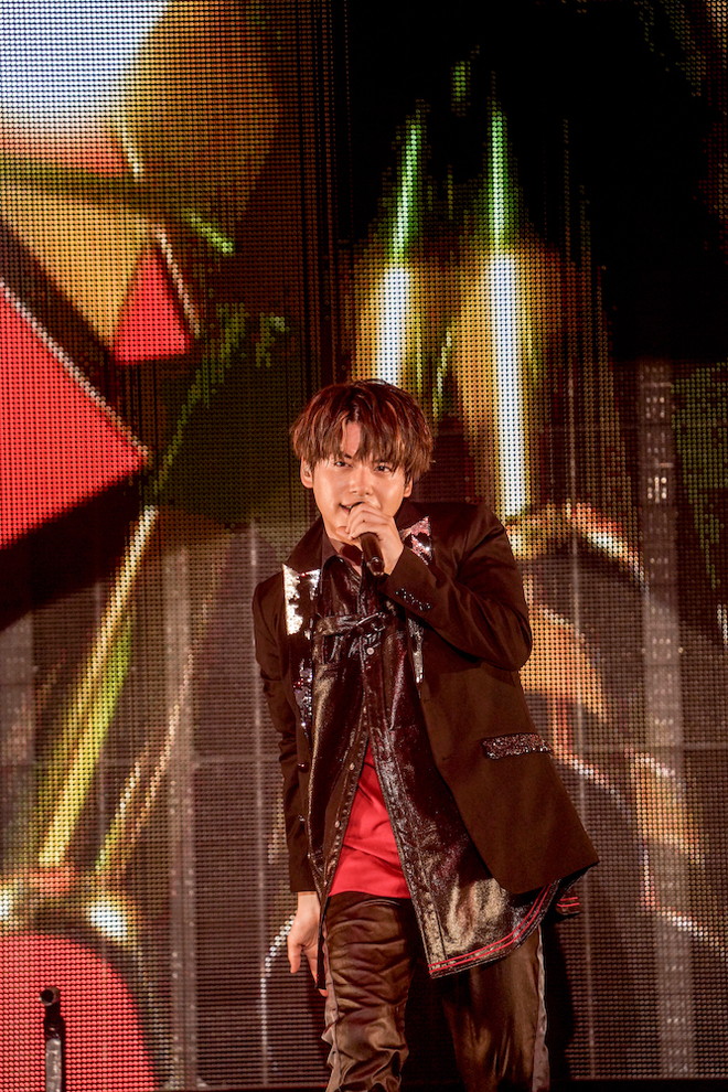 ブルーと黒にイエローの差し色が映えるブルゾン姿で再び姿を現すと、レーザーが飛び交う中1stアルバムからアッパーチューン「VIBES」を披露し、ここから怒涛のダンスゾーンへ突入。先日公開されたミュージックビデオでのプロダンスチーム・KOSÉ 8ROCKSとの異色のコラボレーションが大きな話題を呼んでいたが、この日のステージでもそんなコラボが再び実現!「DNA」のイントロとともにKOSÉ 8ROCKSメンバー10名がステージに登場し、次々と飛び出す大迫力のブレイクダンスに観客のボルテージも一気に跳ね上がる。内田の力強い歌声とブレイキンが一体となった熱いパフォーマンスに、惜しみない拍手が送られた。