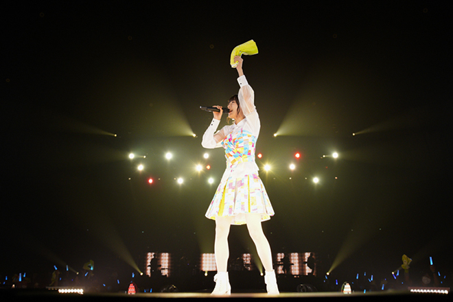 そして「アルペジオ」では、星空を眺めるようなキュートな振り付けを見せる。横浜アリーナの客席で揺らされる一面のペンライトが、歌詞に出てくる「月」や「星」のように見え、会場中が楽曲の世界観に染まっていた。このライブのためにリアレンジされた特別なイントロで始まった「Sweet Melody」では、ステージ上を歩きながら手を振ったりアイコンタクトをしたりと、客席とのコミュニケーションを楽しむ。弾ける笑顔で歌う〈ありがとう〉というフレーズが心に響く。