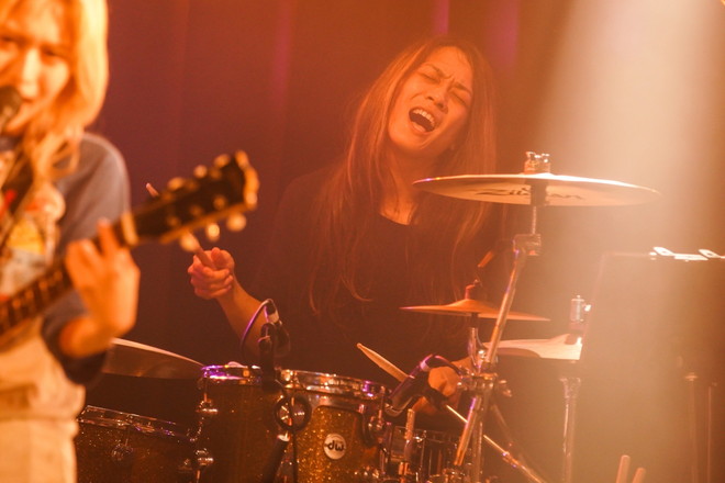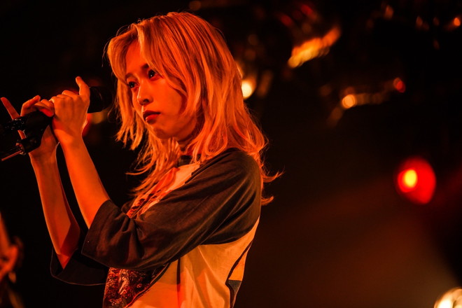前半を駆け抜けてバンドはMCへ。11月28日と12月26日の2回に渡り放送予定のWOWOWプラスでの密着ドキュメンタリーを同道が告知すると、続いてkomakiが12月22日の1stフルアルバム発売を発表。その後、MCはメンバーが揃ってからこの夜でちょうど一か月という話題に。