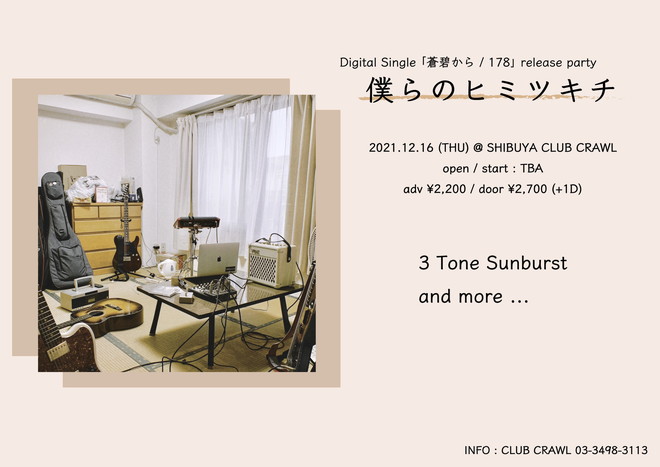 また、リリースを記念して12月16日(木)に東京・渋谷CLUB CRAWLでレコ発イベント<僕らのヒミツキチ>を開催。要注目の若手バンドが集結するとのことなので、今後の発表をお楽しみに。