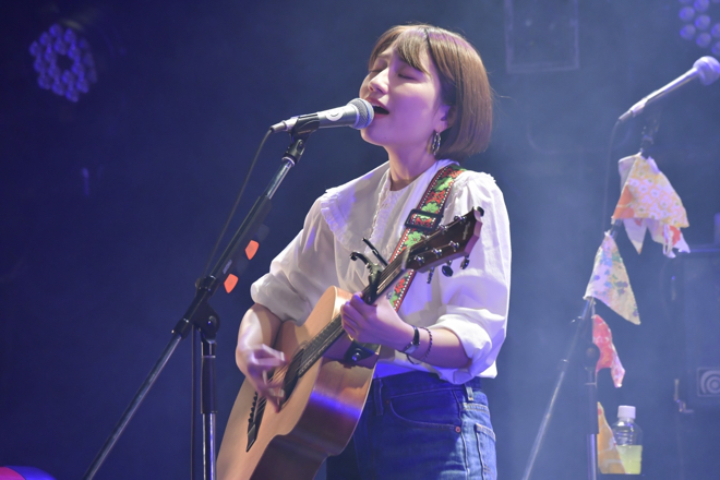 本日の公演も1部弾き語り編からスタート。「どうも、関取花です!」といつも通りの自己紹介から止めないと終わらないMCからスタートし、しっとりとかつエモーショナルに、新曲「きんぎょの夢」まで歌い切る。