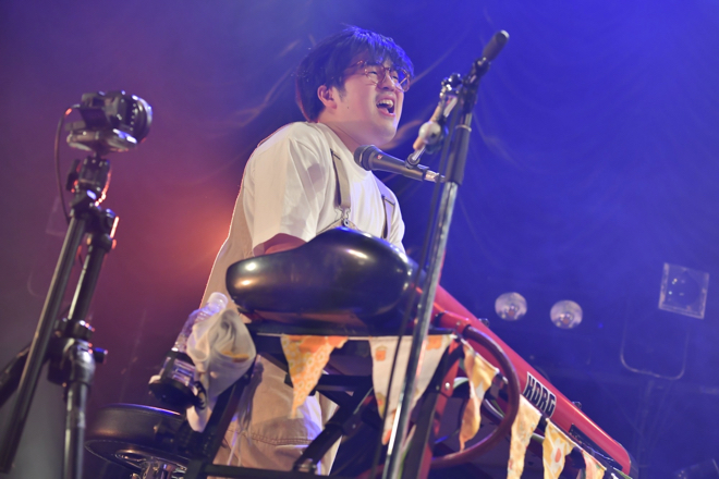 第2部では、愉快なSEが流れると東京キネマ倶楽部の象徴的なバルコニーから登場。「ふたりのサンセット」からスタートし、あっという間に「太陽の君に」までが終了。5曲目の前にスペシャルゲストの齊藤ジョニーが呼び込まれ、3月3日発売となったメジャー1stフルアルバム『新しい花』で齊藤ジョニーが楽曲参加した「恋の穴」を披露。公演も半ば、ステージと会場のボルテージも高まった中、9曲目の「黄金の海で逢えたなら」がたくさんの拍手に包まれて終了、齊藤ジョニーがステージを後にした。