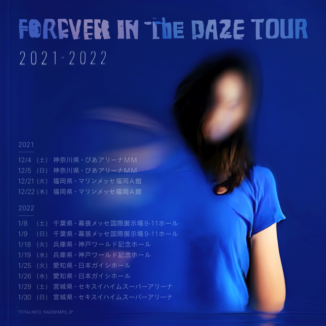 RADWIMPSが、ライブツアー<FOREVER IN THE DAZE TOUR 2021-2022>の開催を発表した。