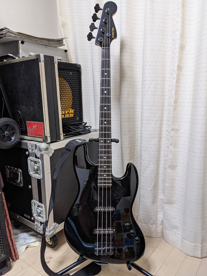 それはさておき、まぁカッコいいの何の!今と違ってスラッとしてて。その時弾いてたのがオールブラックのSCHECTERでした。ライブの翌日、抑えきれず衝動買いしてしまい、依頼ずっと手放す事なく弾き続けてます。楽器のクォリティは申し分なし。ムーンもそうですが、1980年後半のハイエンドベースはとにかく素晴らしいの一言。