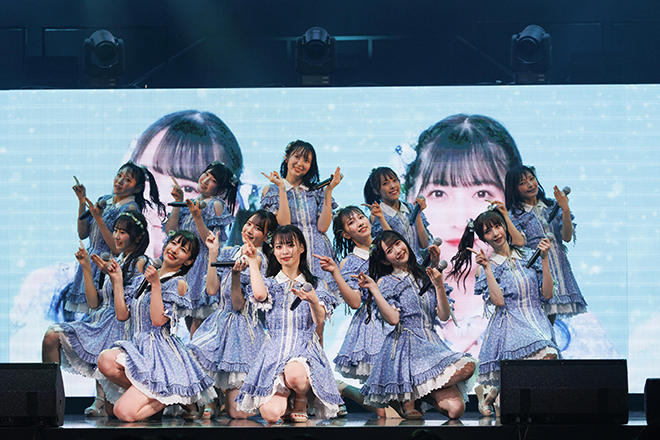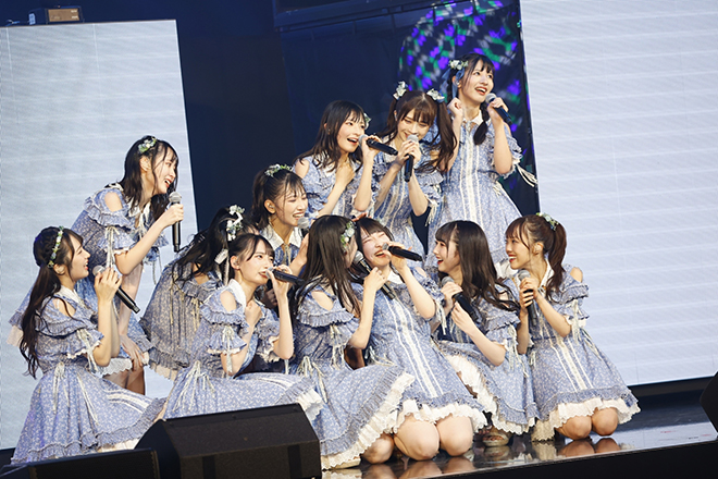 ステージいっぱいに並んだスクリーンの映像でOvertureが初まると、そのまま「君はこの夏、恋をする」が映像でスタート。メンバーそれぞれが自身の歌唱パートで映像から飛び出す演出に、会場のファンがペンライトを振って熱を伝えた。5曲目の「クルクルかき氷」では、間奏で公演ごとに地域の名産や方言などを交えた煽りを行ってきたが、この日の公演では≠MEが目標として公言している東京ドームコンサートへの夢をメロディーに乗せて「みんなで行くよ東京ドーム!」と明るく宣言。ユニットコーナーではカバー楽曲を披露し、落合・鈴木・永田・本田で「波乗りかき氷」、川中子がソロで「月と水鏡」を歌い上げ、尾木・河口・櫻井・菅波・谷崎は「ロマンスのスタート」を、蟹沢・冨田で「太宰治を読んだか?」をパフォーマンスした。