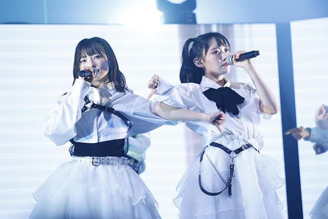楽曲パフォーマンスに戻ると「薄明光線」で蟹沢・櫻井・冨田が圧倒的な歌唱力を見せつけ、続けてツアーの新衣装に着替えたメンバーが「P.I.C.」「いらないツインテール」「ガラスを割れ」と迫力あるパフォーマンスでオーディエンスを圧倒した。VTRに入ると“みるてん”こと本田珠由記が仮歌の収録で全くうまく歌えないエピソードがホラー調で語られており、会場が恐怖と笑いにさらされた。鈴木センター曲「ポニーテール キュルン」を可愛く歌い上げると、ライブでの人気曲「てゆーか、みるてんって何?」では本田が間奏で特技の皿回しを披露。初日には失敗で終わった皿回しも、ファイナルとなる本公演では、“いつもより多めに回す”ほど上達した姿を見せた。「「君と僕の歌」」では、印象的な“大きいステージに連れていく”という歌詞がファンの心と一体感を結び、続けてデビューミニアルバムのリード曲「秘密インシデント」、初のオリジナル曲「≠ME」とメモリアルな楽曲を続け、エモーショナルな空間に。
