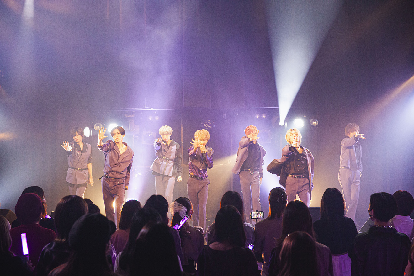 7人のテンポのいい掛け合いのMCの後は、『Lantana』から「Life is da show」を初披露。R&Bやファンクなどブラックミュージックを取り入れた楽曲に合わせて、同曲の作詞担当・CHIBAをセンターにしてジャズダンスの要素やショーのようなフォーメーションが繰り広げられる。これまでのBUZZ-ER.にはないタイプのアーバンなムードで会場が華やいだ。続いては先行配信されたばかりの「B LIKE U」へ。小気味よいビート感に、メンバーたちのアダルティな面と少年性が躍動する。最新型のBUZZ-ER.を堂々と見せつけるセクションだった。