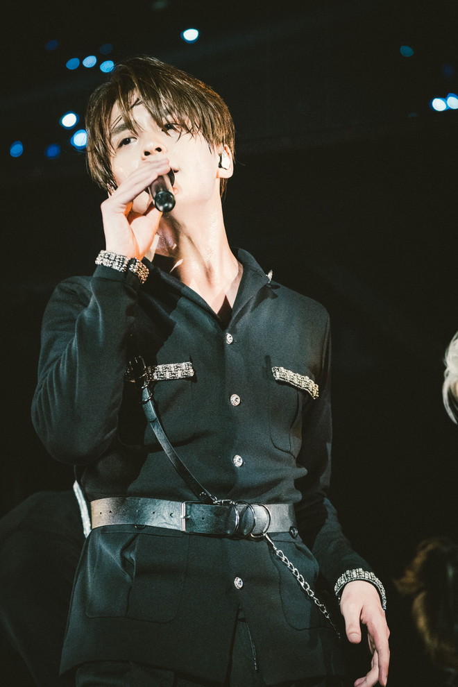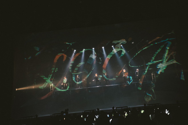 しかし、HAYATOの咳払いを合図に紗幕が降り落ちると、6人は階段を駆け下りて、代表曲「Dark Knight」の目まぐるしいフォーメーションにより、ハードでスリリングな“ワンエンワールド”へと一気に観る者を惹き込んでいく。