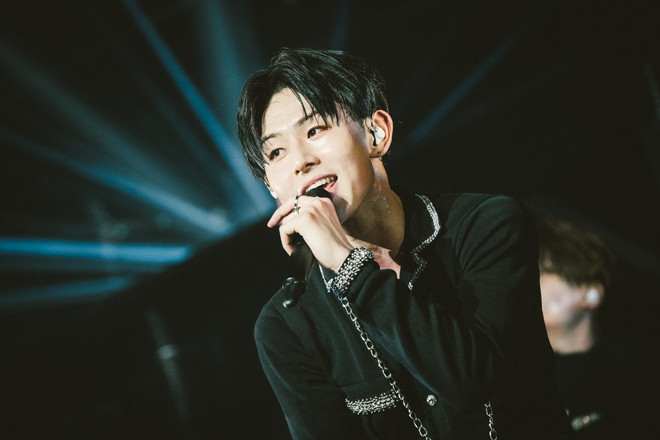525日ぶりの有観客公演となった夏ツアーの追加公演以来、中野サンプラザのステージにONE N’ ONLYが立つのは4ヶ月ぶり2度目。前回同様ソールドアウトの場内に鼓動のようなビートが響き、紗幕越しの壇上に現れた6人が最初に贈ったのは、最新作「L.O.C.A(PT-BR ver.)」だ。