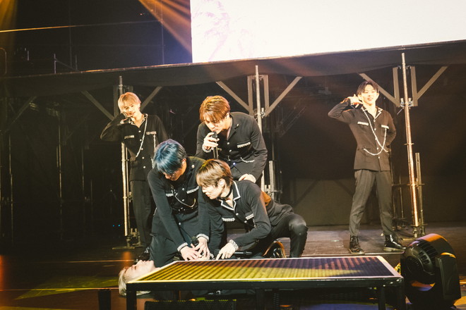 難しい社会情勢下でも応援を続け、会場に足を運んでくれるSWAGたちへの感謝を口々に述べたメンバーからは、「みんなを裏切らないよう精一杯走っていきます」(REI)、「もっと大きくなって恩返しできるようにパフォーマンスも磨いていきます」(TETTA)、「これからも皆さんの希望になれるグループになるので、ドンとついてきてください!」(NAOYA)と頼もしい台詞が次々に。さらにKENSHINは「この人生を選択して間違ってなかったって改めて感じました。ここで満足しない。満足なんて1ミリもしたことない」と語り、EIKUは「皆さんはかけがえのない存在です。心も強くなって精一杯頑張っていきたい。最後まで僕たちの傍で支えてください」と素直な言葉を伝えてくれた。