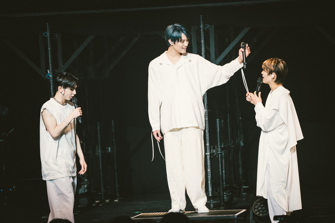 「ここからは一緒に作っていきたい」とNAOYAが誘って、以降はSWAGと一緒に踊れるブロックに突入。「Video Chat」では6人それぞれがお立ち台に立って、スマホの画面を指で作る振り付けを愛らしく繰り出してゆく。その名の通りポップ&キュートな「POP! POP!」では、グループカラーの白のペンライトを大きく振る客席に「メッチャ綺麗!」の声も。曲中でのコール&レスポンスが恒例になっている「HOLIDAY」でも、ステージ上からメンバー自ら客席をバックに自撮りしたり、「社会人!」「明日学校の人!」などとお題を出して該当する人を立たせたりと、声の代わりのコミュニケーションをしっかり取ってくれるのが嬉しい。