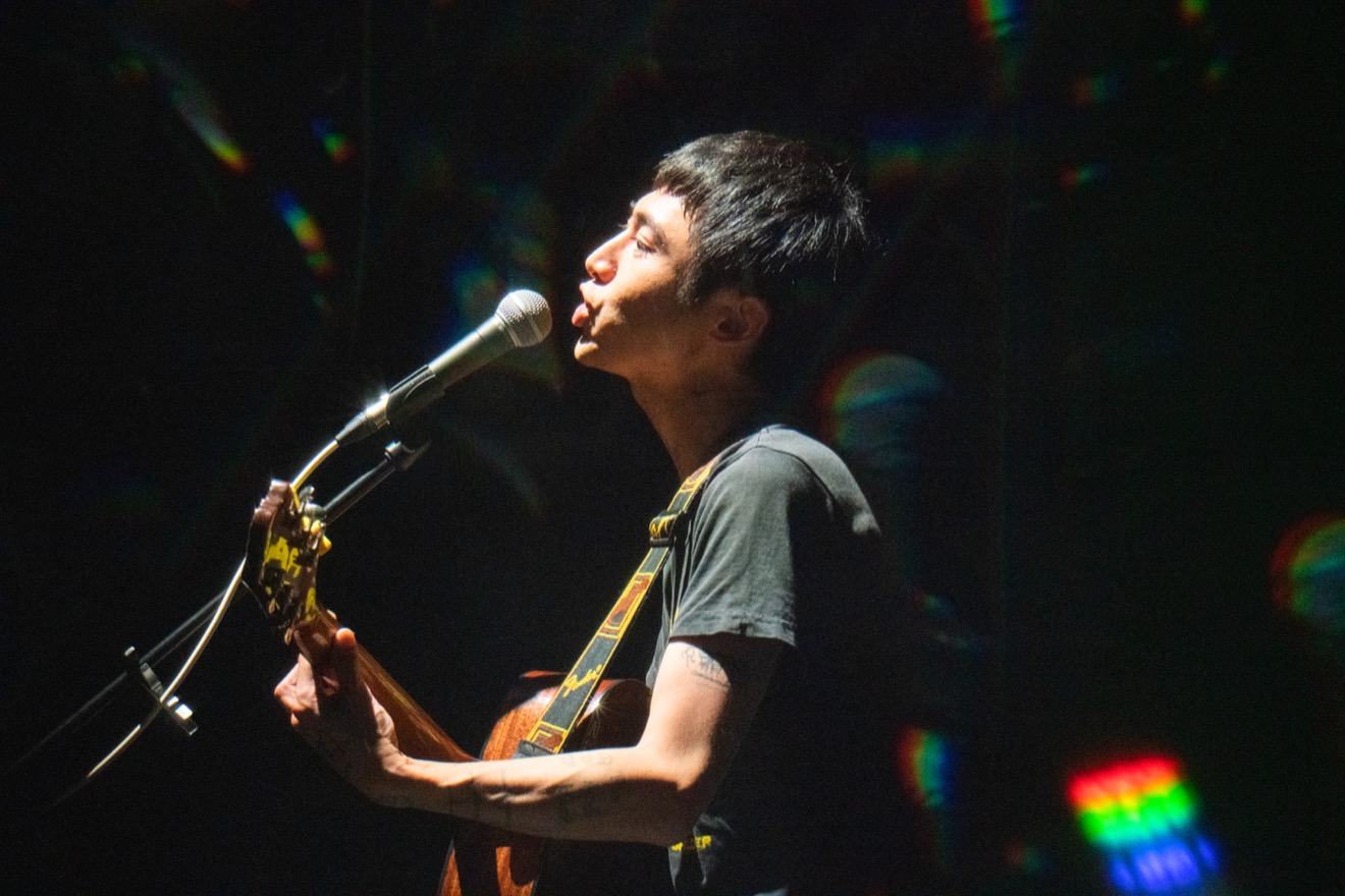 まずステージに現れたのは、4歳の時からギターに触れ、15歳で全作詞作曲・多重録音を自身で手掛けたCDをリリースした若きマルチプレイヤーKEEPON。