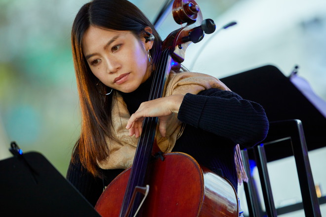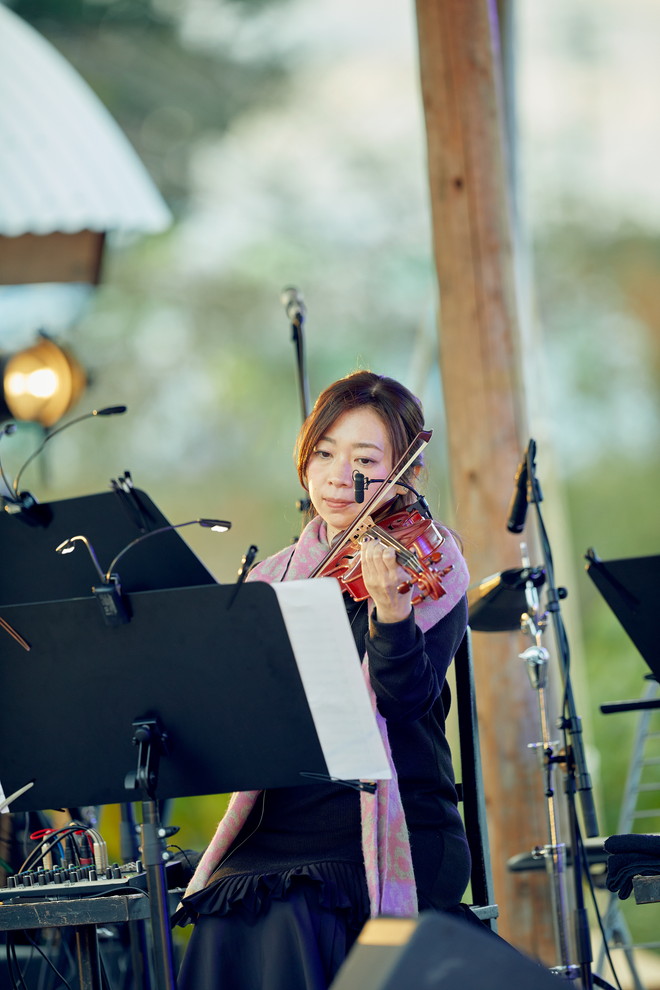 ゆっくりと日が暮れていく中、後半は「my town」や「EL」などセカンドアルバム『diverse journey』収録曲を続けて披露。そしてクライマックスになったのは、あたりがすっかり暗くなり幻想的なライトに照らされてパワフルに歌った「She don’t care」、そしてラストの「Swallowtail Butterfly~あいのうた~」だった。鳴り止まない拍手の中、深い余韻を残してライブは終了。しばらくすると会場は真っ暗になっていた。