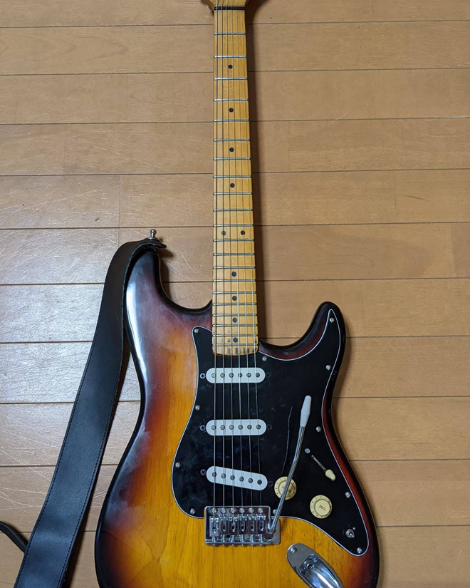 たまたま実家に帰った時に目に付いて『これ、ビンテージ級じゃね!?』と思い、リペア開始。ボロボロのボディやネックを磨き、ペグを変え、ブリッジを変えFenderのPUやCTSのポット、オレンジドロップ、等々…と当時の販売価格以上のパーツを組み込み、1V1T化の上でダイレクトSWを乗せ…新たに生まれ変わりました。元々のパーツはボディとネックのみwww