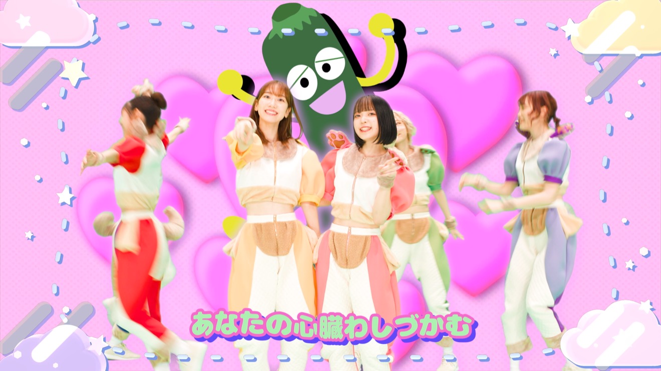 クロちゃん(安田大サーカス)の歌詞を具現化した今作MVは、衣装に付いた豆柴(犬)のしっぽを愛らしくフリフリするメンバーのバックショットでイントロスタート。サビの一部のダンスシーンを除き、ほぼフリーな動きがユキ・レイソレ(柏木由紀)を受け入れてのお互いの探り探り感が逆に微笑ましい。全体を通して昭和・平成のアイドル雑誌や教育テレビをそのまま映像化したようなポップさで、どこを切り取ってもハッピーな世界観に仕上がっている。