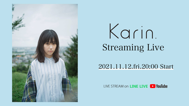 Karin.が、11月12日20時より<Karin. Streaming Live>を開催すると発表した。YouTubeとLINE LIVEで配信される。