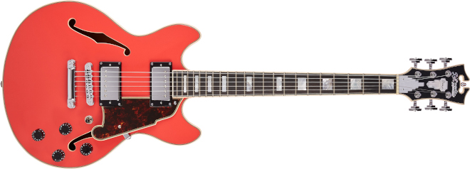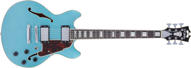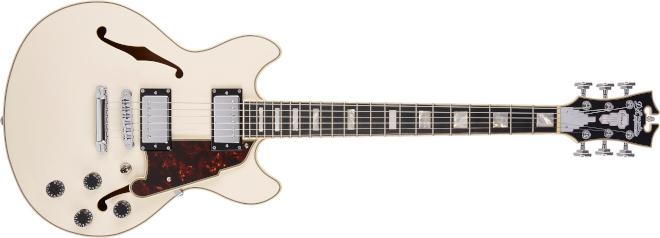 D’Angelico(ディアンジェリコ)から、小振りな14インチ幅で演奏性の高いセミホロー・ボディーのダブル・カッタウェイ・モデル「Premier Mini DC」が発売された。