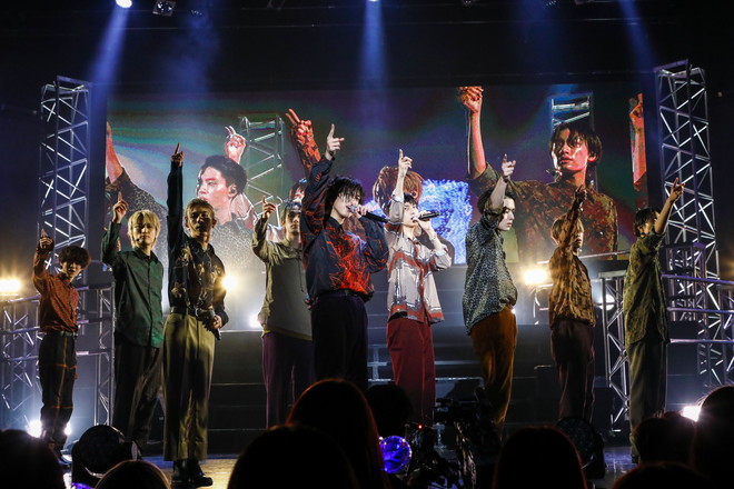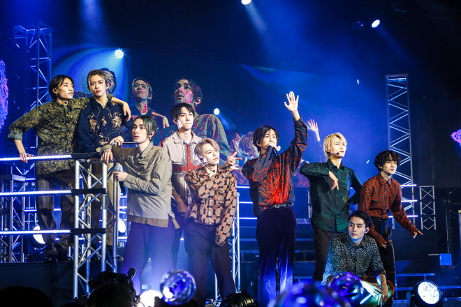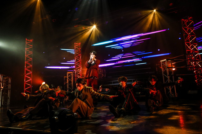 ステージ上に並んだ学校机に着席するなり“柴崎楽はメンバーのオフショットを撮ってくれる”、“田中洸希はニンニク入りのラーメンを食べるたびマスク越しでも「くさい!」とメンバーからイジられる”等、内輪話を暴露する9人に場内のムードもユルユル。しかし、ひとたび音が鳴れば一転、スリリングに連なるペアダンスや息の合ったシンクロダンスで魅了する「WILD BEAT」を皮切りに、「HACK MY CHOICE」から1stシングル「Pendulum Beat!」と初期曲を切れ味鋭い最新のパフォーマンスで叩きつけ、6年の進化を見せつける。