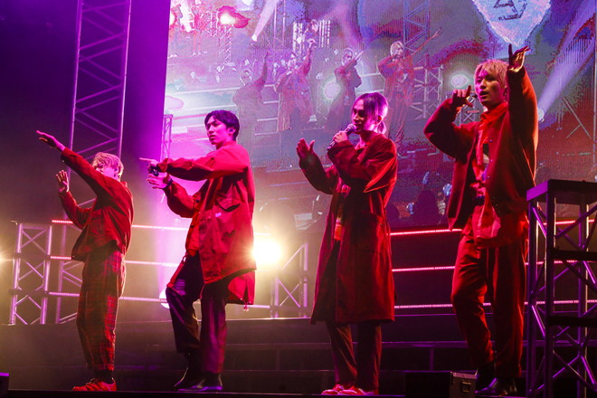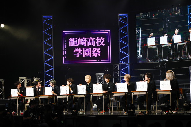 例年通り今年の<DRA FES>も2部制で行われ、昨年と同じく“龍崎高校学園祭”と銘打たれた1部では、龍崎高校の生徒として学ラン姿のメンバーが登場。ライブパフォーマンスを交えながら、彼らの本音や結束力をコーナー企画で探ってゆくという構成が取られた。