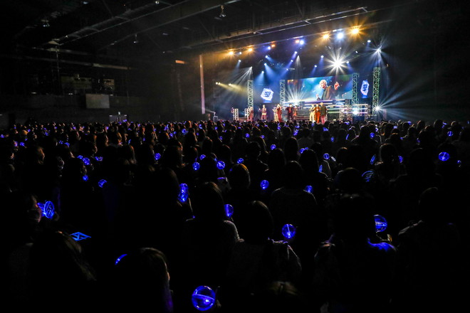 序盤のメドレーを振り返り、互いにしかできないことがあると確かめ合うと、「相思相愛……尊敬です!」という古川の言葉から突然暗転し、なんとサンダードラゴンの持ち歌である「Take It To The Top」をファイヤードラゴンの4人で披露。同じ曲でも瑞々しさから温もりへと、受ける印象が変わったのは不思議であり、必然とも言うべきか。逆にファイヤーの「BlackJack」に挑んだサンダーの5人は、ステージの段差を上手く使いながら今持てる精一杯のアダルティを醸して、ファイヤーの4人に肉薄する。