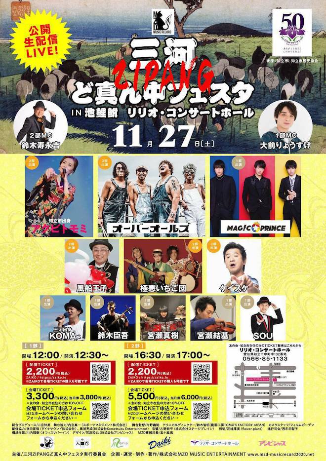 アクビトモミ :そこなんです。<三河ZIPANGど真ん中フェスタ>という祭りの場へみんなで集まり、その空間をみんなの楽しい笑顔で埋めつくし、明るく元気になってほしい。勇気・元気・覇気を演者たちから受け取り、明るく前向きな気持ちでまた明日を輝かせてもらいたい。もちろん、演者側も楽しむ意識まんまんでいます。まずは<三河ZIPANGど真ん中フェスタ>を会場でも、配信でも観てください。きっと、あなたも“祭り上がれる”と思います。いえ、みんなで祭りあがっていきましょう。この日は愛知県のど真ん中の知立市で起こす祭りを通して、世の中の人たちみんなの心に笑顔の花を咲かせますから。ぜひ、知立市へいっぺん遊びにおいでんね!