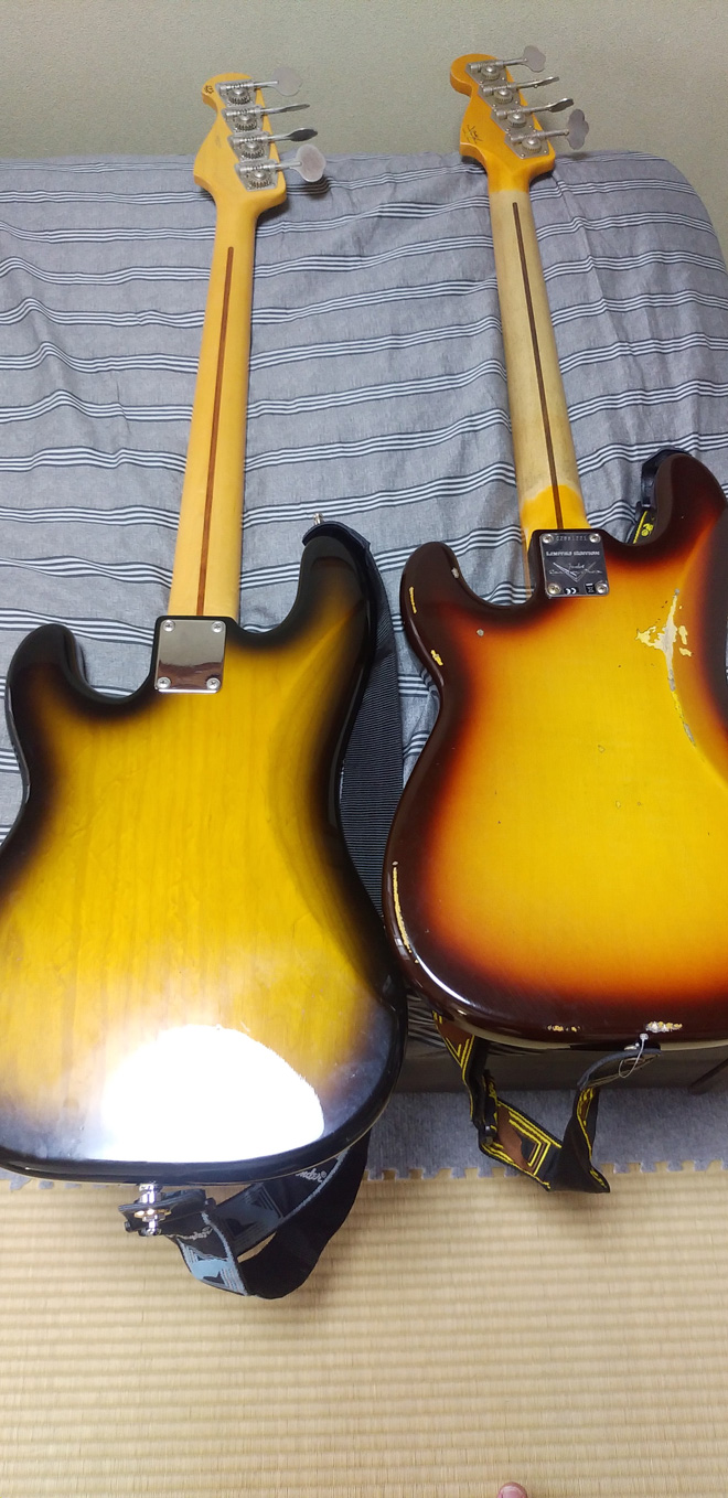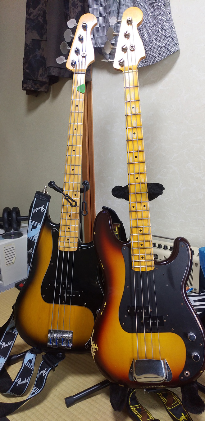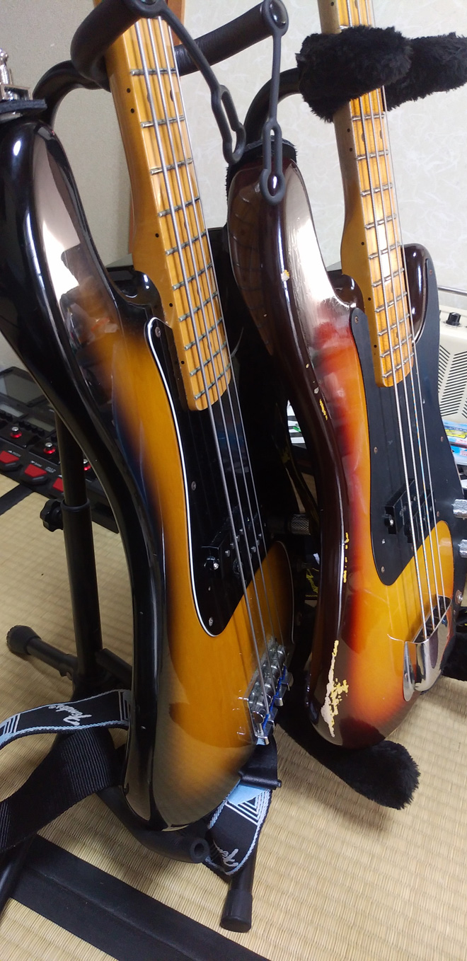 並べて見るとボディの大きさとか塗装も全然違うことにも気がつきましたし、私は本物至上主義ではないのですがやっぱりfenderって凄いなとも思いました。でも国産のベースもやっぱり凄い弾きやすいのでお互いの長所も生かしつつ早くまたステージに立ちたいですねー