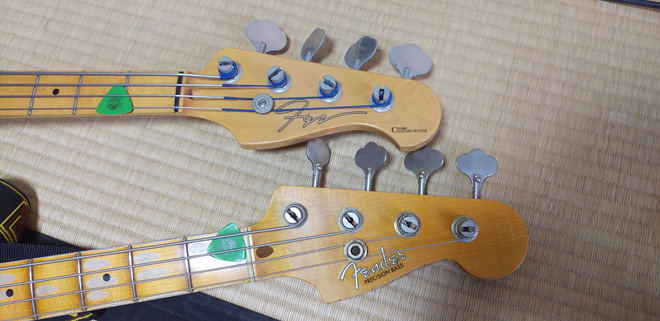 それからこのベースもだいぶ改造を重ねブリッジをヒップショットに変え、ピックアップもダンカン→EMG→ディマジオ→ダンカン→無名のピックアップを得て昨年に貰い物の70年頃のfenderのピックアップに変え、弦もフラット弦に変えたところ、とんでもなくいい音に生まれ変わり、昔からの弾きやすさもあって、もうコイツだけでいいじゃん。となったのですが、先月、その事をギターショップの方に話したところ彼はfender以外は認めないという方だったらしく本物を持ってみろとfenderを薦められました。