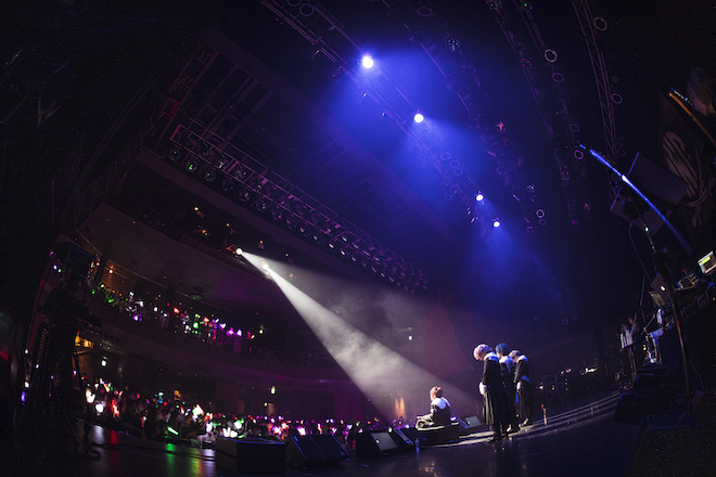 身体がなぜか緊張して手の震えが今日は止まらないと零すあげいんが「やっとこの曲を4人で歌えるね」とつなぐと、「Misty」、テレビアニメ『不機嫌なモノノケ庵 續』オープニングテーマであり、モノパレの旅路にも通じる「ロングタイムトラベラー」へ。ファンを楽しませる前に、自分たちがありのままに楽しむことでその楽しみがファンに伝播していくことを知っているのが、彼ら。チャーミングな振り付けで魅了した「午前3時のセンセーション」では4人の砕けた関係性を映し出す。