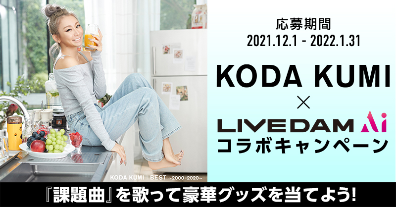 カラオケDAMのコラボキャンペーンでは、DAM★とも会員(登録無料)になった後、DAM設置店舗で『BEST~2000-2020~』収録の課題曲を3曲歌うことでエントリーが可能。応募者の中から抽選で「KODA KUMI 20TH→21ST ANNIVERSARY EVENT」グッズがプレゼントされる。歌う楽曲が9曲以上になると応募できるプレゼントが増えるのでどんどん歌って参加してほしい。