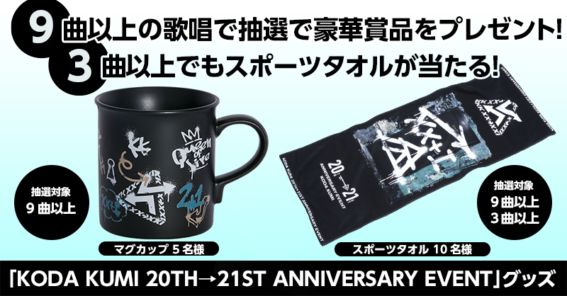 応募者の中から抽選で「KODA KUMI 20TH→21ST ANNIVERSARY EVENT」グッズをプレゼント。