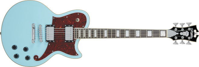 ピックアップは、メタル・カバードのセイモア・ダンカン・デザインのTE-103シングルコイル(ネック&ミドル)とMH-102ミニハムバッカー(ブリッジ)のSSHレイアウト。コントロールは1ヴォリューム、1トーン、5ウェイ・ピックアップ・セレクターのレイアウト。ハードウェアはクロームで統一し、オックス・ブラッドとブラック・フレークはグローバーのスーパー・ロトマティック、チューンOマティック&ストップ・バー・テイルピースの組み合わせ。スカイ・ブルーは6ポイント・トレモロの仕様。ボディーはグロス・フィニッシュで、オックスブラッド、ブラック・フレーク、スカイ・ブルーの全3カラーをラインナップしている。