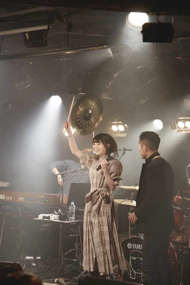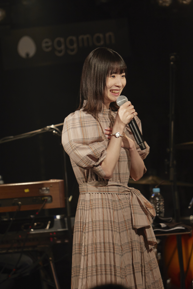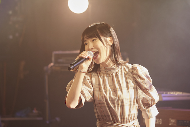 前回は仮面バンド・流田Projectとのスペシャルコラボライブだったが、今回、川音をサポートするのはオバタコウジ(G)、今井隼(Key)、HIROTOMO(B)、眞田将至(Dr)の気心が知れたいつもの顔ぶれ。川音はチェックのワンピース姿で登場し、オープニングは“サヨナラは終わりじゃなくて 始まりの1ページさ”とエールを送る「一人じゃないから」。開放感たっぷりの歌と演奏にハンドクラップで応える客席から大きな拍手が送られ、力強いバンドサウンドをバックに笑顔を見せながら気持ちよさそうに歌う姿が印象的だった最新シングル「はじまりのメロディ」へと移行した。