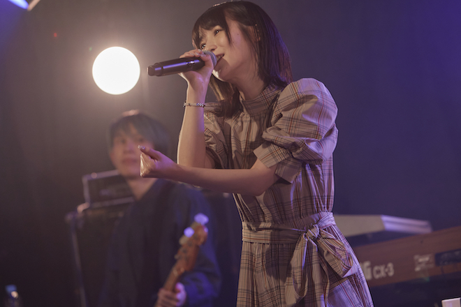 そんな和気藹々としたコーナーを挟んで、ライブは後半戦に。8ビートのロックナンバー「シーズントレイン」では星形のタンバリンを叩きながら川音が歌い、ギターソロではオバタが背中弾きで盛り上げ、HIROTOMOが「楽しんでますか?」と声をあげる。ハンドクラップでコール&レスポンス。ヴォーカリストとしていくつもの表情を持っている川音のエネルギッシュな面がフィーチャリングされた「Dear My Life」では今井が振り切れたキーボードソロでメンバーも笑顔にさせ、歓声がなくても会場のテンションが上がっていくのが肌で感じられる。