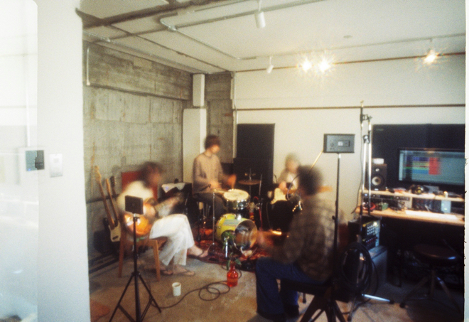 「はっぴいめりいくりすます – at the haruyoshi/Take 5」は、バンドが8月にリリースした最新アルバム『遙かいま』に収録された楽曲だ。8ミリフィルムカメラで撮影されたというミュージックビデオには、彼らが地元福岡で制作拠点として使用しているプライベートスタジオ「Haruyoshi」でのレコーディング風景や、日常のオフショットが収められている。『遙かいま』のジャケット写真も手がけたKanade Hamamotoが監督を務めた。
