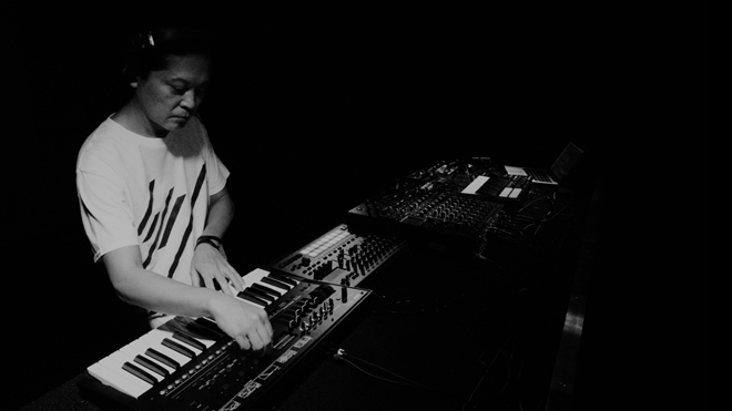 ライブ用のアレンジ。その場の思いつきで加える&動かす音の数々。あとはDJの時にはない緊張しているであろう顔(笑)。