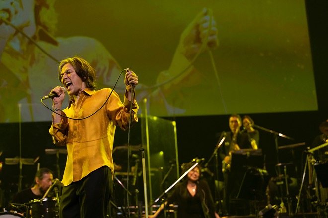 松本孝弘のプライベートな質感が多分に音となり、稲葉浩志の生活環境に根付いた価値観がそのまま歌詞となって、各楽曲が誕生したとなれば、内なる情熱をふつふつと音にすることがゴールであり、いわゆるストロングスタイルのB’zフォーマットに落とし込む必要も必然もなかったのだろう。そんな『FRIENDS III』の楽曲だからこそ、<B’z presents LIVE FRIENDS>は10人のストリングスと4人のブラス隊にドラム&パーカッション、そしてキーボードにベース、ギター、コーラスという20名に及ぶサポートファミリーを従えての、特筆すべきサウンドフォーマットが組み込まれることとなった。