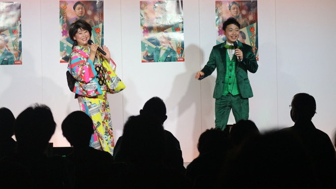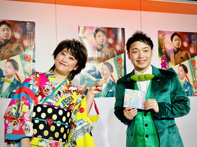 イベント当日、三丘は枝豆を模した蝶ネクタイなど、プロデューサー水谷のアイデアを盛り込んだステージ衣装で登場。「その明るいパワーを改めてたくさん勉強させていただきました」と、大先輩に見守られながら新曲を披露した。