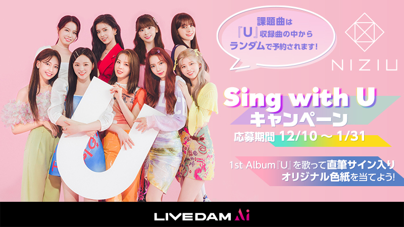 NiziUの1stアルバム『U』が発売されたことを記念し、11月30日(火)よりカラオケDAMでのコラボキャンペーン<Sing with U キャンペーン>がスタートした。年末年始をNiziUの楽曲と共に楽しめる企画が展開予定となっている。