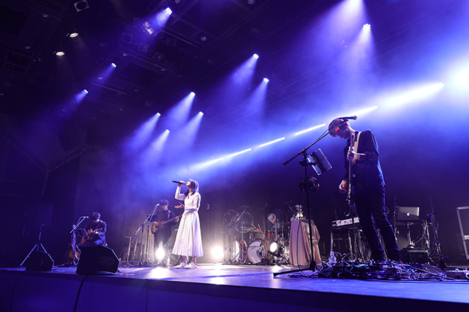 新曲「今日も君でした」で幕を開けると、「君の街まで」「普通の恋がわからない」とアッパーチューンで一気にボルテージを上げていく上野。中盤のアコースティックコーナーでは上野の弾き語りに寄り添うようにパーカッション、ウッドベース、ガットギター、スライドギターなど多彩な音をバンドが奏で、より音楽的自由度を増した世界観が会場を包み込んでいた。