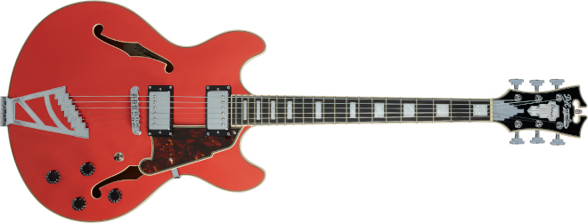 D’Angelico(ディアンジェリコ)から、16インチ幅のセンターブロック・セミホローボディーのダブルカッタウェイモデルPremier DC Stairstepが登場した。