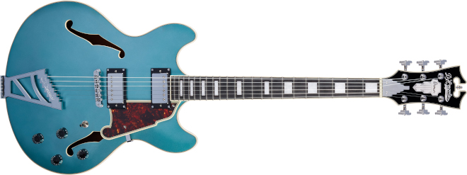 ピックアップは、メタル・カバードのセイモア・ダンカン・デザインのHB-102NハムバッカーとHB-101Bハムバッカーの2基を搭載。コントロールは2ヴォリューム、2トーン、3ウェイ・ピックアップ・セレクターのレイアウト。ハードウェアはクロームで統一し、ステアーステップ・ボタンのロトマティック・タイプ・チューナー、チューンOマティック&ステアーステップ・トラピーズ・テイルピースの仕様。ボディーはグロス・フィニッシュで、カラーはシャンペーン、フィエスタ・レッド、オーシャン・ターコイズの全3カラーとなる。