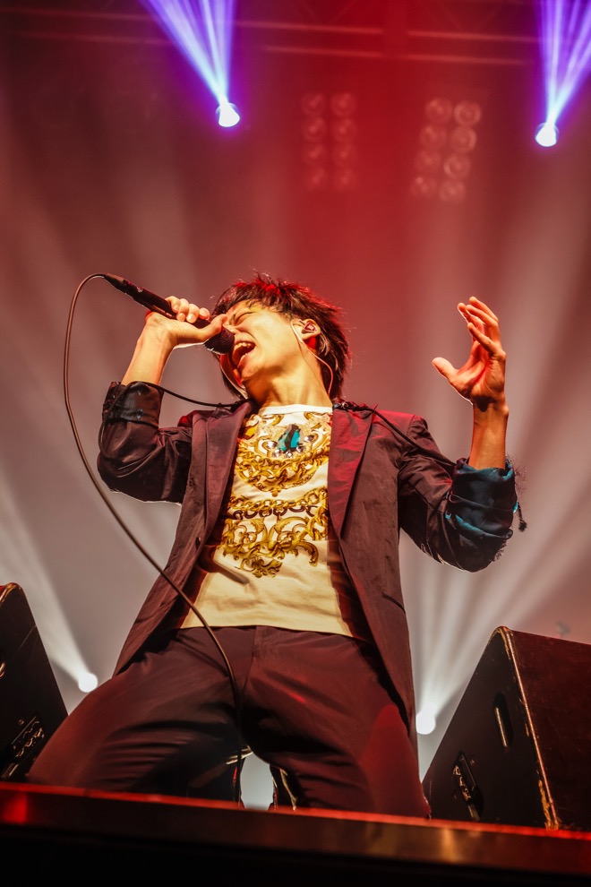 結成間もない2000年にデモテープとして無料配布された初期の代表曲「TRUE×××」でライブの幕を開けると、続けて東京進出後の2002年にリリースされた1stアルバム『INDIES』のリードトラック「バニラ」を披露。冒頭2曲を終わった段階で、既に田澤孝介(Vo)の衣装が破損するなど、ツアーを経てきたゆえのトラブルがありつつも、活動初期を彷彿させるようなテンション全開の体当たりパフォーマンスで、フロアのボルテージを一気に上昇させた。