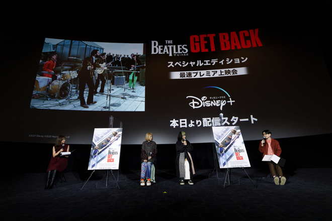 ピーター・ジャクソンが監督を務めた『ザ・ビートルズ:Get Back』は、ロンドンでの42分間の“ルーフトップ・コンサート”を含む57時間以上の未発表映像と150時間以上の未発表音源を基にした3話構成のドキュメンタリーだ。配信初日の11月25日(木)には東京・TOHOシネマズ日比谷スクリーン5にて、監督自身が編集した約100分のスペシャル・エディションのプレミア上映会も開催された。上映前に行われたトークショーではハマ・オカモト(OKAMOTO’S)と中川絵美里が司会を務め、ゲストとしてPUFFYのふたりが登壇。ザ・ビートルズの魅力から、彼らから受けた影響までを語った。以下、同イベントのオフィシャルレポートをお届けする。