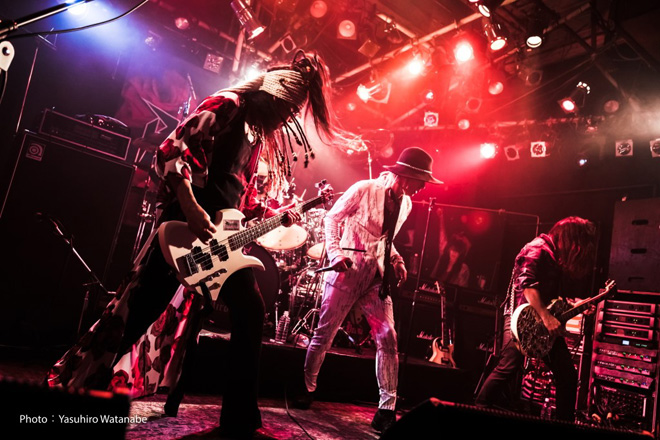さて、前置きが長くなったが、筆者自身はこの二夜公演のうち第二夜の模様を目撃した。1曲目に「JOY RIDE」を配し、本編のラストを「INSANE」で締め括るという構成は、まさに1980年代ジャパニーズ・メタルにおけるインディーズの名盤との誉れ高い『INSANE』(1985年)の幕開けとクロージングを踏襲するものだったが(注:同作がCD化された際には楽曲収録順が変更されている)、その狭間には1980年代の代表曲の数々ばかりではなく、『Farewell』にも収められていた斎藤の遺作にあたる「幻」、ごく初期の代表曲であると同時にメジャー期にはレコード会社側の意向によりバンドにとって不本意な形で収録されることになった「LUST」なども組み込まれ、まさにREACTIONの歴史を総括しながら、再結成後の姿を想像させるものになっていた。