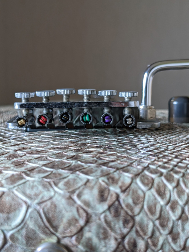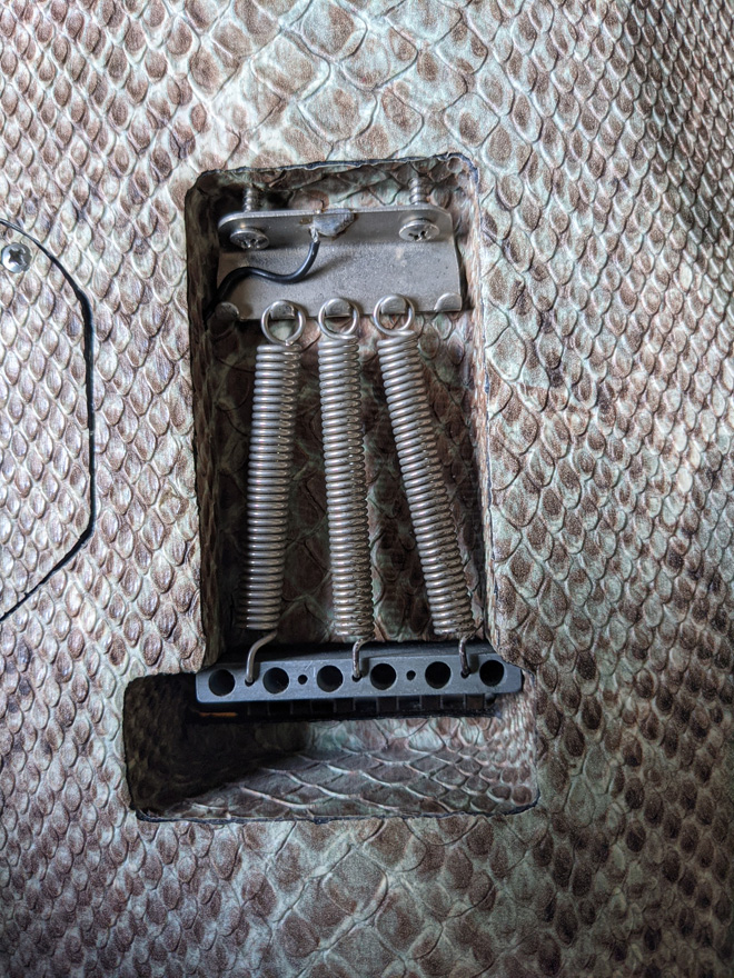 隅々に蛇皮だし、何よりも気に入ったのはブリッジ!FERNANDESのオリジナルで、ヘッドクラッシャーというブリッジ、エンドボールを切らなくてもいいってのが嬉しいです。