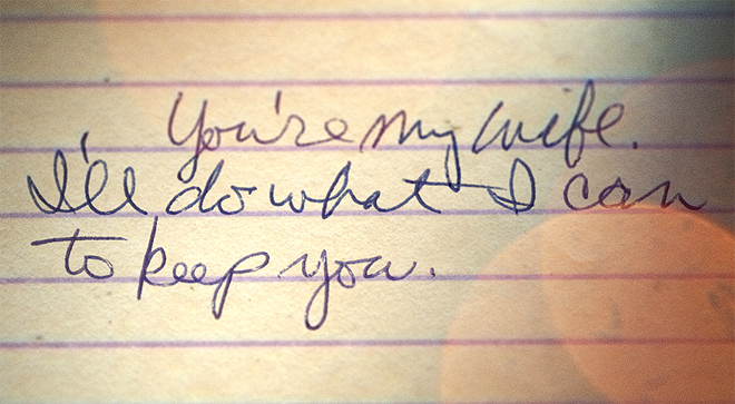 この度公開する新場面写真は、本作の中で最も貴重と言える、妻ジュディスが所持していたプライベート写真やベルーシが彼女に宛てた手紙の一部を捉えたもの。二人の初デートである「ホームカミング」(「ホームカミング」とは、アメリカのほとんどの高校で秋に行われる一大イベント。生徒たちがキングとクイーンを選出する)時の写真では高校生の二人が正装して並んでいる。校内で中心的人物だったベルーシは、この時に人気投票でキングに選ばれており、ジュディスは当時の彼について、「運動が出来て、頭が良く、音楽も出来て、面白い。まさに理想の人だった」と振り返っている。その後、ジュディスは恋人としてだけでなく仕事面でもサポートし、正式に婚姻届を出すのは約10年の交際を経てから。手紙には「You’re my wife. I’ll do what I can to keep you.(君は俺の妻だ。君を失わないために俺は努力する)」と綴っている。ジュディスが彼にとって大きな支えであったことがこの1枚からも分かるが、本編ではさらに二人の強い愛がうかがえる内容となっている。