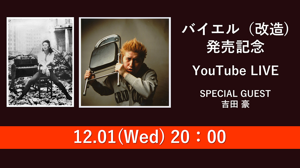 今回生配信が決定した番組では、ゲストに「不良になる」をテーマに寄稿したインタビュアー/書評家の吉田 豪を招き、対談形式で『バイエル(改造)』について掘り下げていく。番組は12月1日(水)20時~無料で視聴可能で、アーカイブは12月6日(月)正午まで。本作を制作するに至った経緯や、裏話など、ここでしか聞けない話が盛りだくさんの内容を予定しているとのことだ。